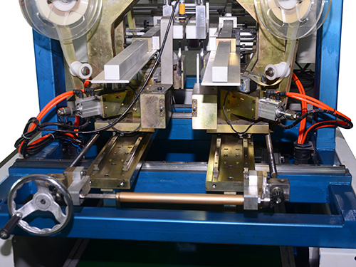 本廠無模貼角機是采用PLC編程技術(shù)觸摸屏人機界面,參數(shù)設(shè)置及故障顯示、故障停機功能。此機器不用做模具,根據(jù)測量盒子內(nèi)徑大小直接轉(zhuǎn)動手輪移動相應(yīng)尺寸并固定即可。操作方便實用,是貼角機一種全新的突破。大大節(jié)省了工廠做模具所產(chǎn)生的時間和費用。